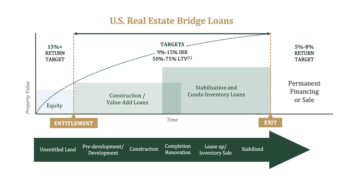 - Assets which can benefit from bridge loans in order to maximise value prior to exiting into permanent facilities or sale